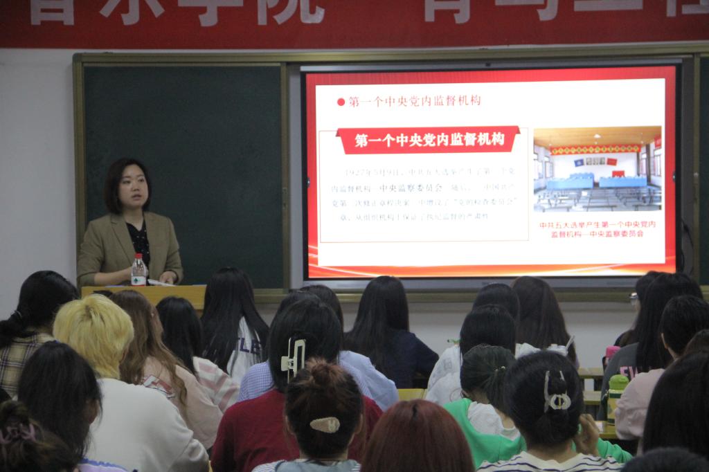 为提高入党积极分子的思想觉悟,树立正确的入党动机,4月19日,我校纪委监察专员办公室综合室副主任孙欢欢以“知敬畏、存戒惧、守底线,争做清正廉洁的合格党员”为题为我院入党积极分子讲授党课。