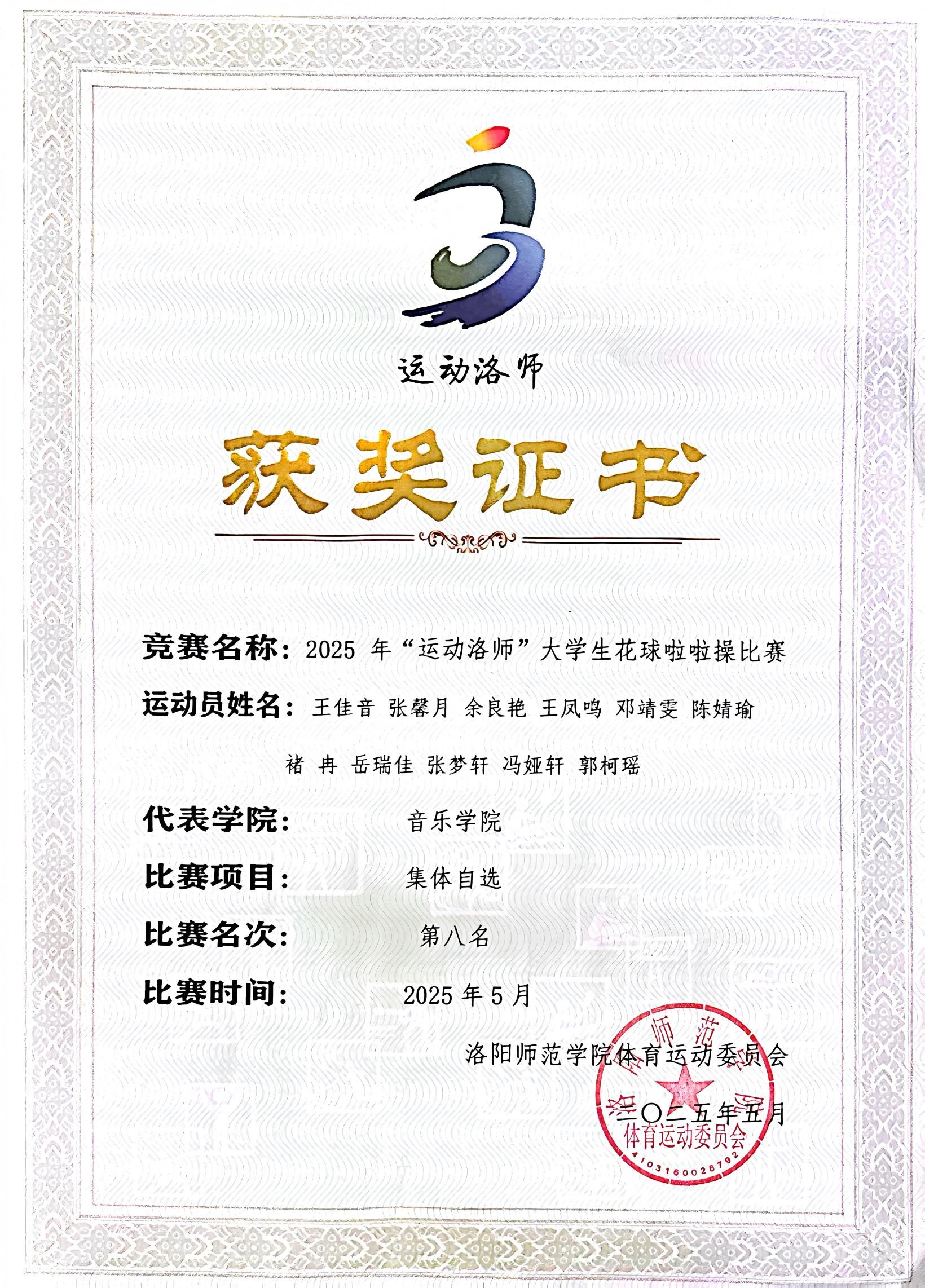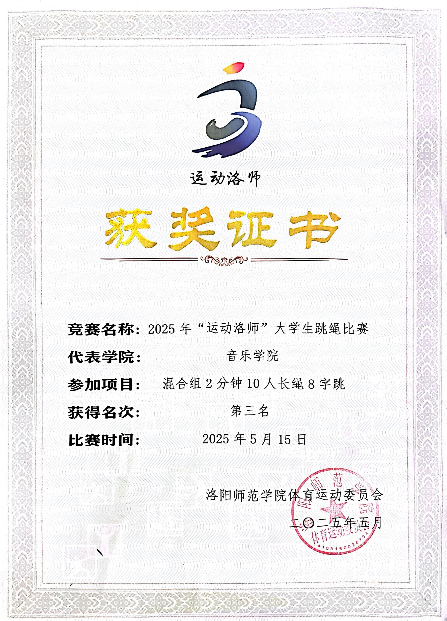 近日,洛阳师范学院“运动洛师”系列比赛圆满落幕,我院学生以饱满热情投入这场体育盛会,并取得多项佳绩。