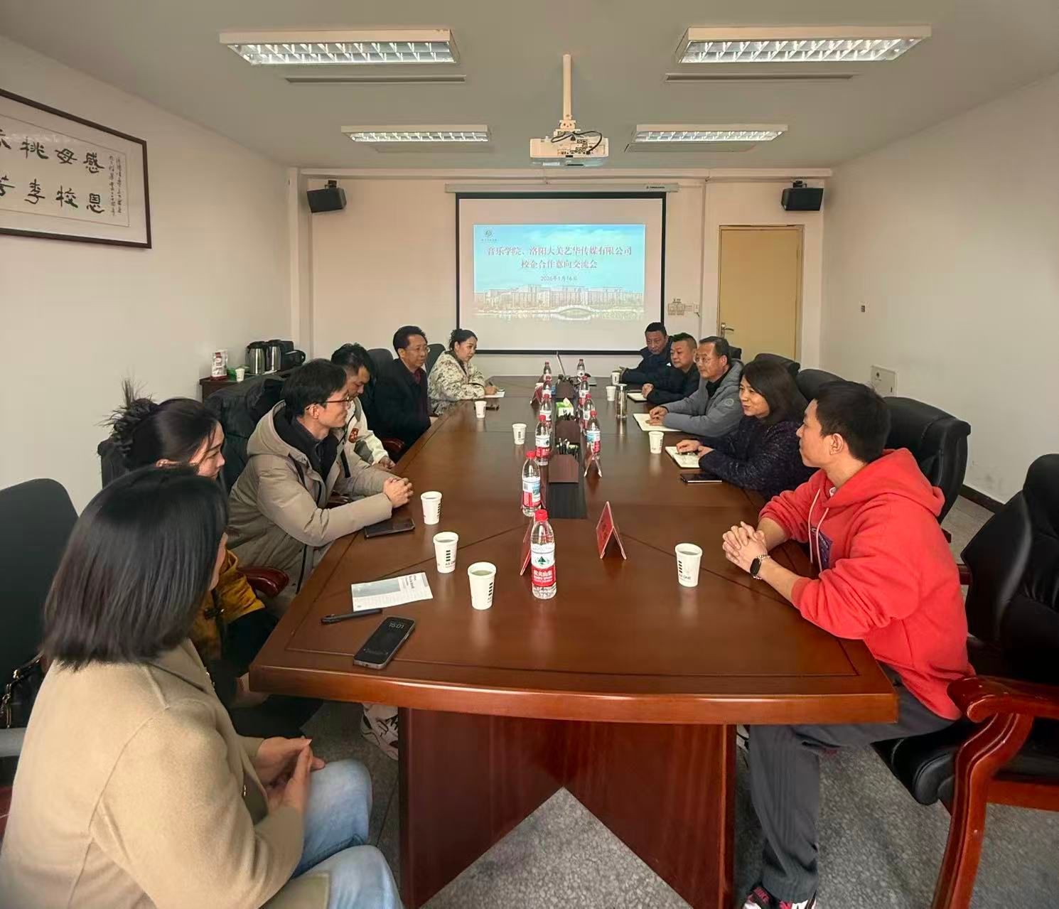 近日,北京知渔文化传媒有限公司、洛阳大美艺华传媒有限公司、洛阳瑞丰科技有限公司、河南省人才产教一体科技有限公司4家单位受邀先后来到音乐学院开展调研考察与交流。音乐学院院长高彩荣、党委书记陈立栋等领导出席会议,双方围绕校企合作、产学研融合、实习就业基地共建等核心议题深入研讨,凝聚合作共识。
