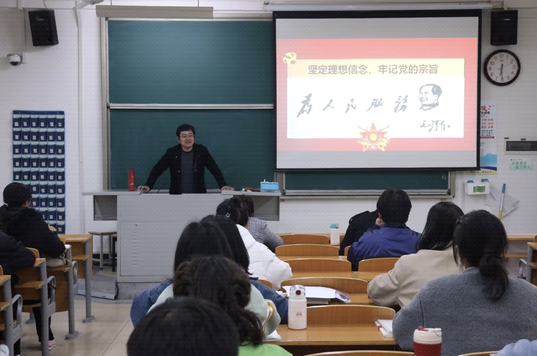 4月4日晚,商学院副院长余江波以“坚定理想信念,牢记党的宗旨”为题向参与党课培训的入党积极分子讲授党课。