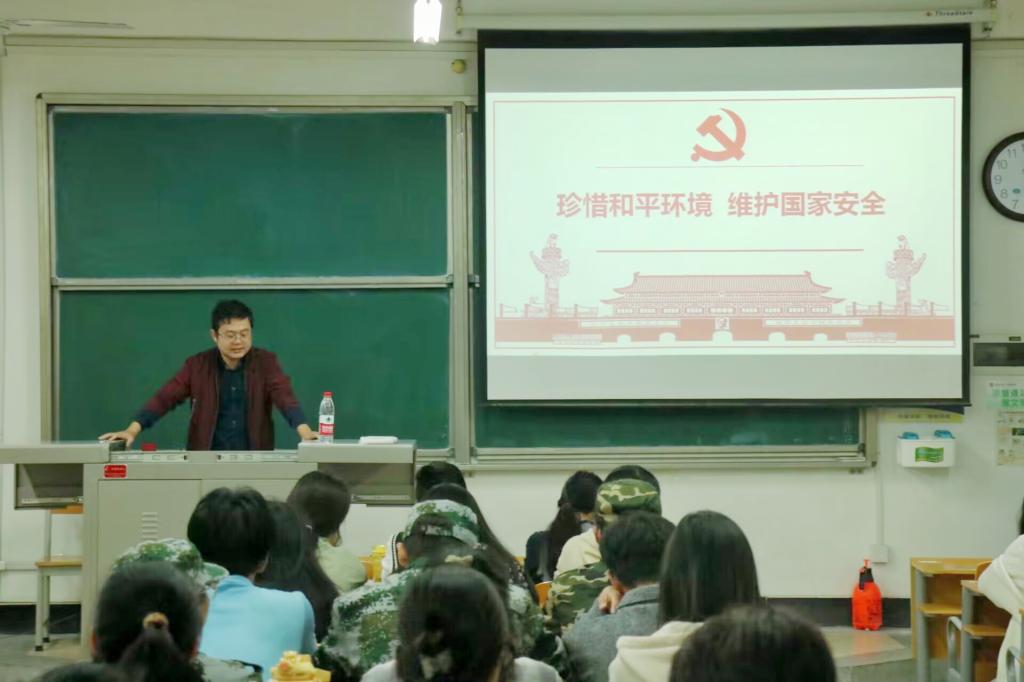 2023年10月16日晚,商学院副院长余江波以“珍惜和平环境,维护国家安全”为题讲授党课。商学院入党积极分子和预备党员参与培训学习。