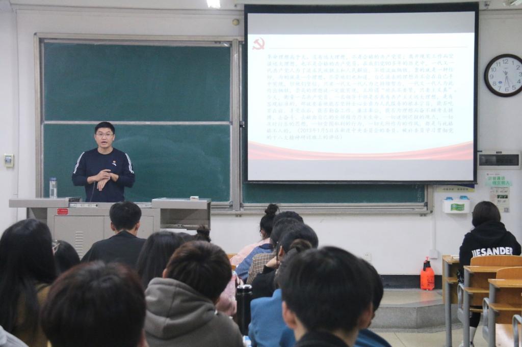 2023年10月19日晚,商学院辅导员刘曙光老师以“新时期大学生党员如何发挥先锋作用”为题为商学院入党积极分子和预备党员讲授党课。