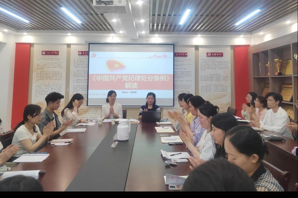 5月29日中午,商学院学生第四党支部在问礼一号书院党团活动室开展“廉洁纪律和群众纪律”主题党日活动,校团委高莹书记、商学院张瑞萍副书记和学生第四党支部全体党员参加。