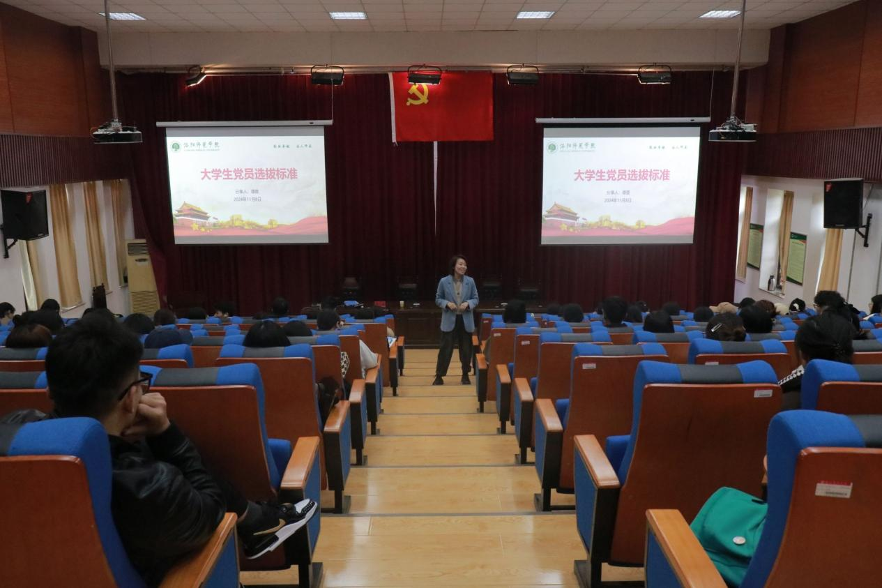 11月8日中午,法学与社会学院党委副书记谭音以“高校党员发展工作与人才培养相结合的路径探索”为题在A3-202校园法庭为入党积极分子和预备党员讲授党课。