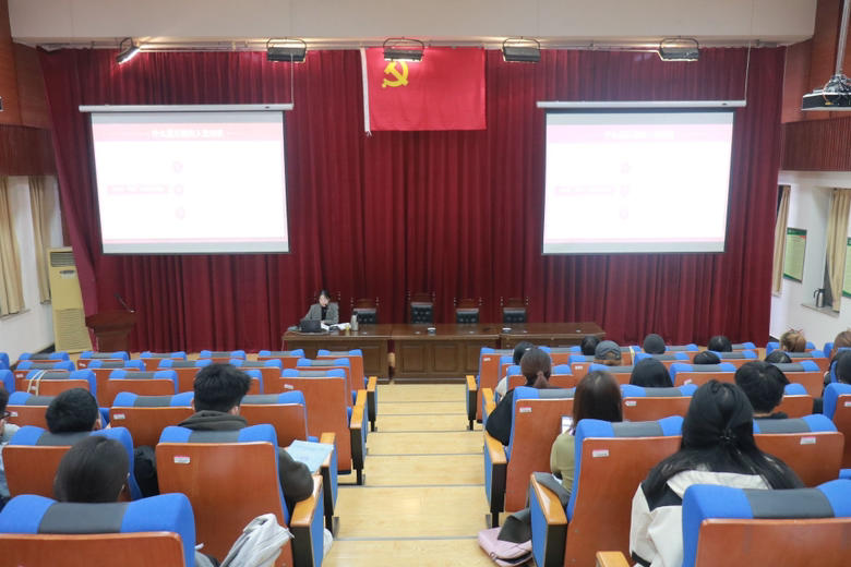 11月14日晚,商学院党委联合法学与社会学院党委在A3-202校园法庭举行2024年下半年积极分子、预备党员培训班集中授课。问礼书院1号学生社区育人导师李怀瑾以“端正入党动机,严格入党程序”为题讲授党课。
