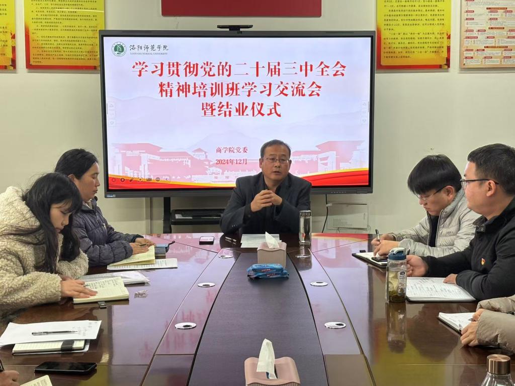 为全面深入学习领会党的二十届三中全会精神,激发广大党员干部担当作为,进一步提高学校治理能力和治理水平,12月5日,商学院在A-516举行科级干部、党员学习贯彻党的二十届三中全会精神培训班结业仪式。党委书记陈立栋、党委副书记张瑞萍以及教职工各党支部科级干部、党员积极参与。