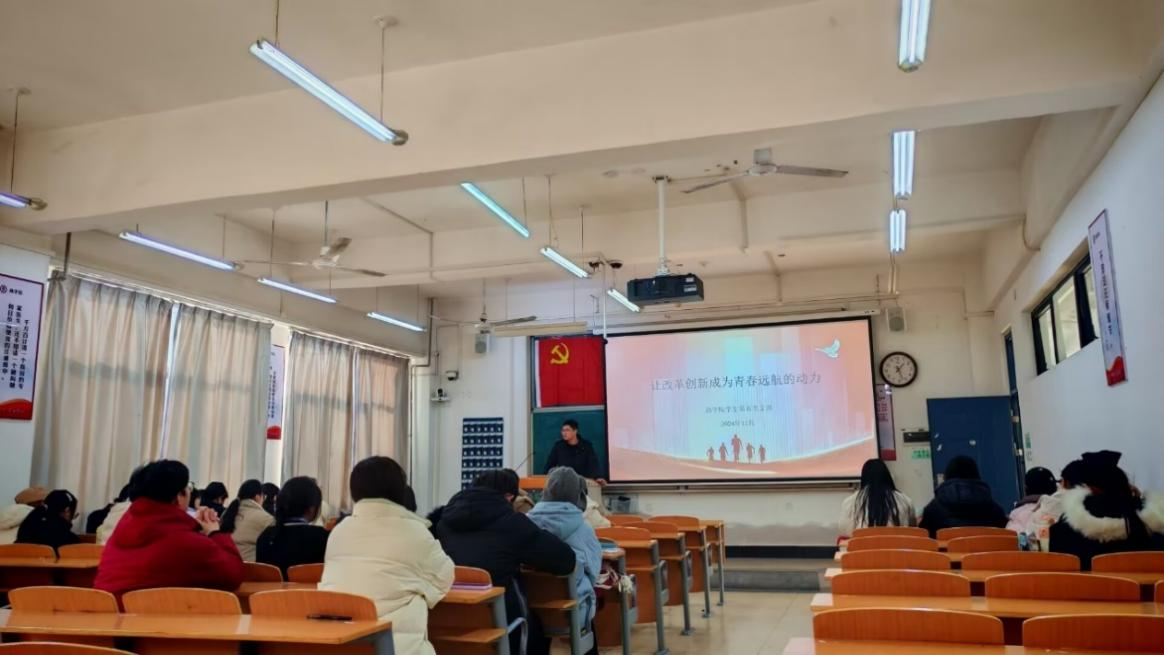 12月26日,商学院学生第五党支部书记刘曙光以“让改革创新成为青春远航的动力”为题向支部党员讲授党课。