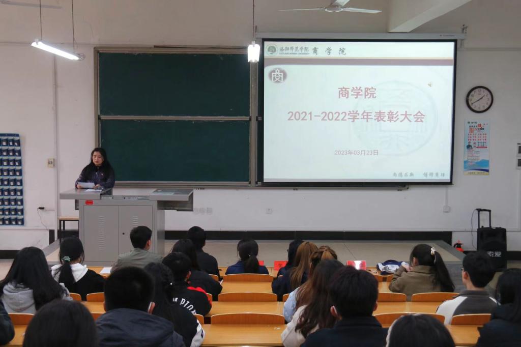 会议伊始,张瑞萍宣读商学院2021-2022学年表彰决定。颁奖完毕,创业赛事学生代表匡炎炎,运动员学生代表刘中扬以及学习标兵学生代表王沛华依次上台发言。最后,学院团委副书记刘曙光老师作总结发言。他表示,本次表彰大会是对过去成绩的肯定与总结,也是向新目标积极进取的新起点。这份荣誉是同学们成长的见证,希望在座的同学们向榜样学习,不断提升自身能力,努力成为全面发展的卓越人才。