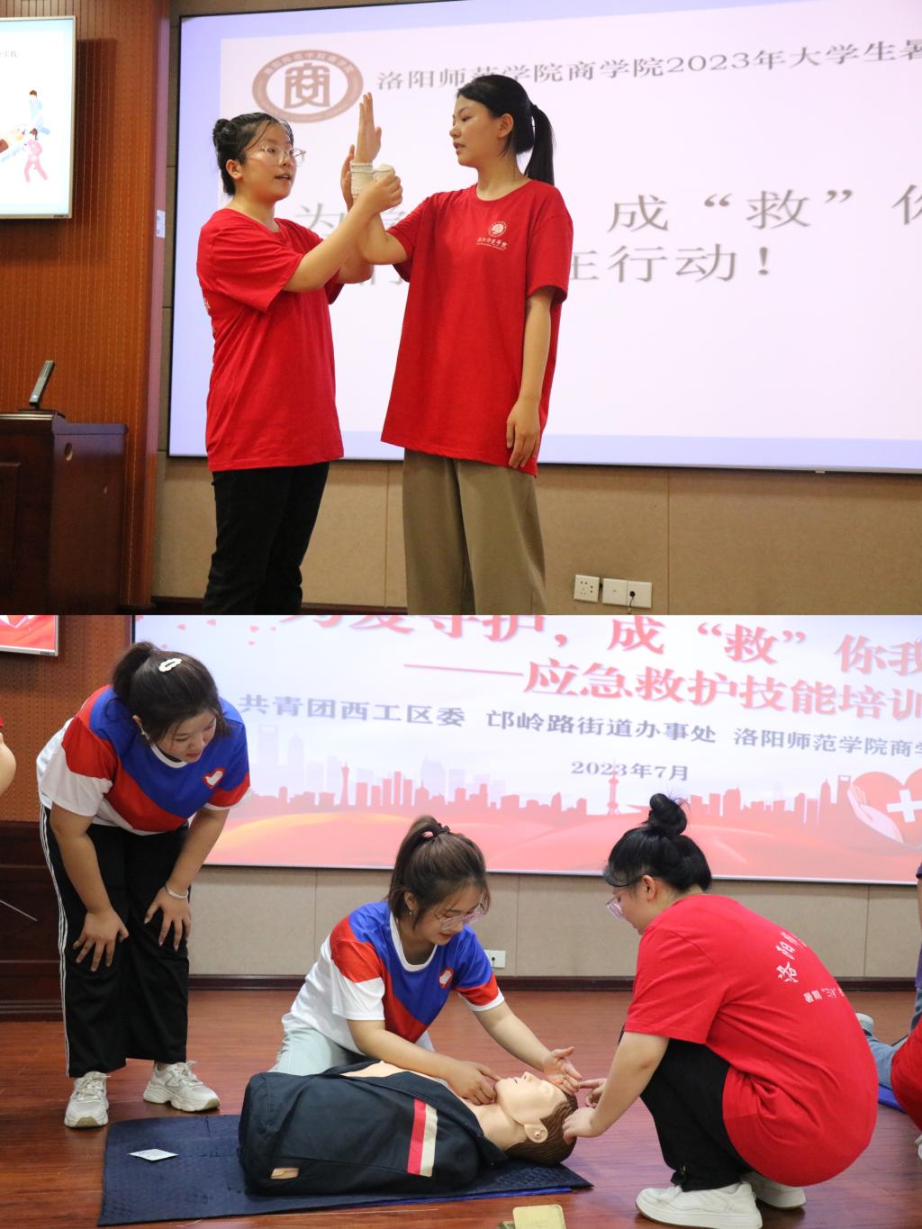 本次活动由洛阳师范学院商学院联合共青团西工区委、邙岭路街道办事处共同主办,旨在进一步增强基层社区工作人员的应急救护安全意识,提高其应对突发事件和意外伤害的应急处理能力。培训受众主要为所属辖区的基层社区工作人员以及“返家乡”社会实践的大学生,参与人员近百人。