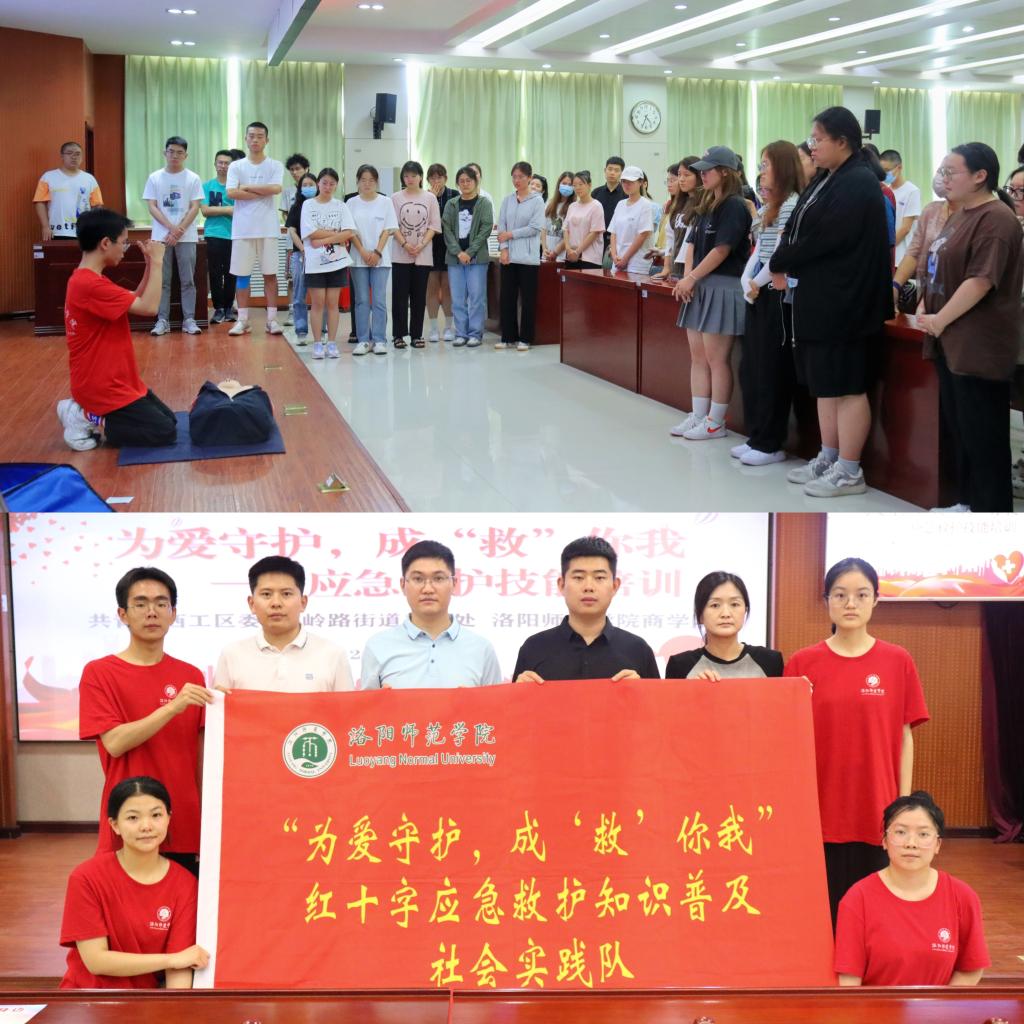 7月5日下午,洛阳师范学院商学院“为爱守护成‘救’你我”红十字应急救护知识普及社会实践队走进西工区应急科普大讲堂开展社区宣传培训活动。