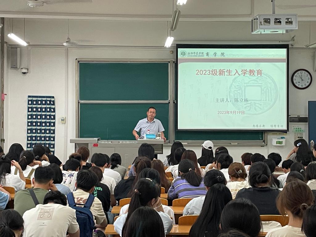 9月19日上午,商学院党委书记陈立栋以《构建积极的角色意识,做合格大学生》为题为2023级新生讲授开学第一课。