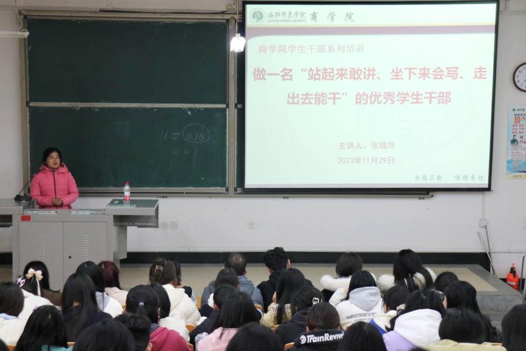 为增强学生干部的服务意识,提高其组织能力和管理能力,进一步发挥学生干部的模范带头作用,11月30日晚,我院在A5-109教室召开第二次团学骨干培训会。商学院党委副书记张瑞萍以“做一名站起来敢讲、坐下来会写、走出去能干的优秀学生干部”为题开展培训。