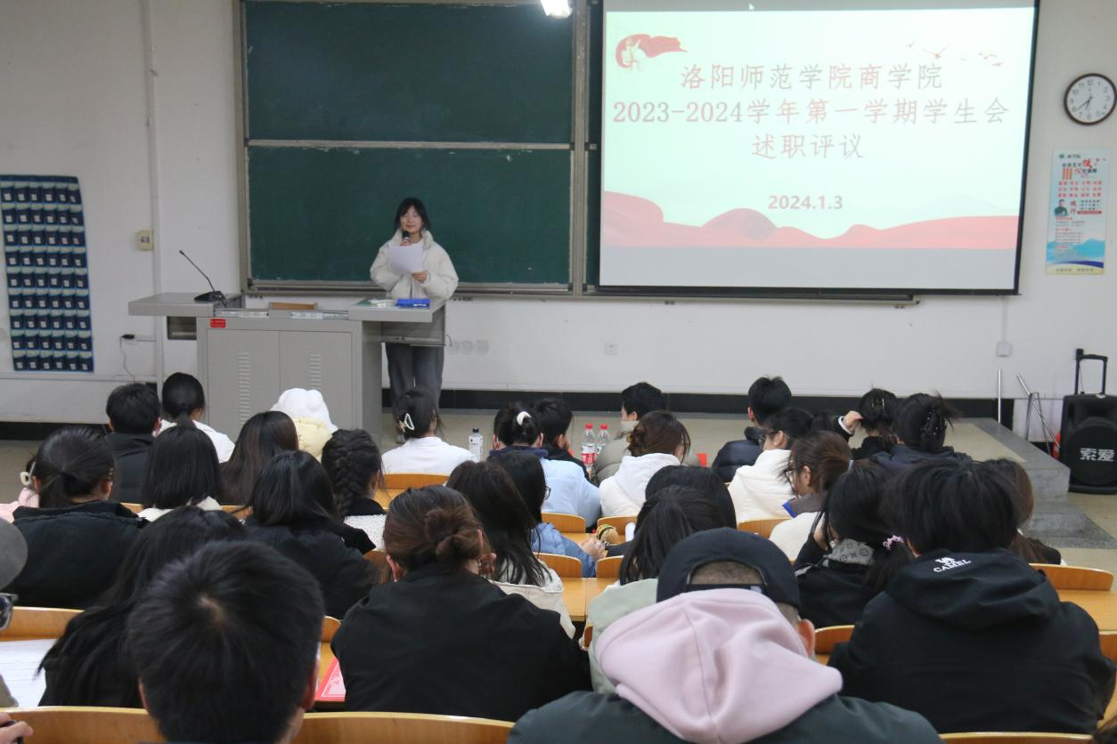 为进一步加强学生干部队伍建设,全面准确地掌握学生干部的工作情况,扎实落实学生会组织述职评议制度,加强学生会的凝聚力、向心力、服务力,1月3日,商学院在A5-109教室开展2023-2024学年第一学期学生会述职评议会。我院辅导员老师杨旭兵、王红权出席并指导本次学生会评议工作,商学院学生会成员进行述职报告。
