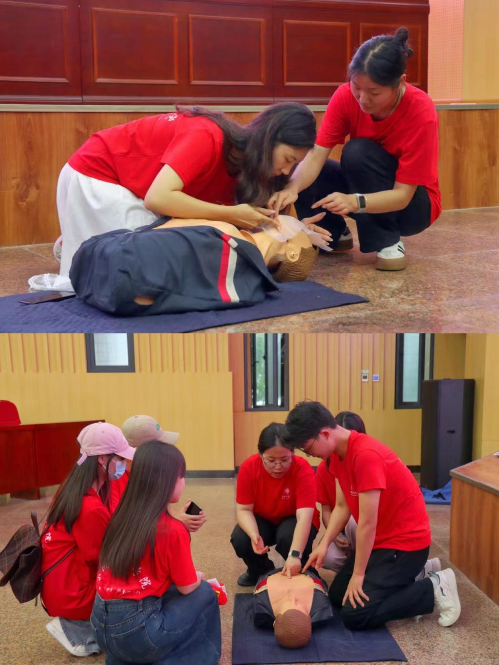 在安全技能培训环节,实践队成员向大家详细介绍了心肺复苏术和海姆立克急救法的实操要领。讲解员采取理论与实操相结合的方式,让各实践团队队员深入了解急救知识与技能,并借助模拟人,生动演示了胸外按压、开放气道、人工呼吸等心肺复苏各个环节的操作步骤与要点,力争让每一个动作做到准确、规范、到位。本次宣讲旨在增加各实践团队的急救知识,提升其急救能力,更好地应对活动过程中可能出现的突发情况。宣讲过程中,各实践团队队员认真学习了解常用的急救知识并积极进行实操体验,取得了良好的宣讲效果。