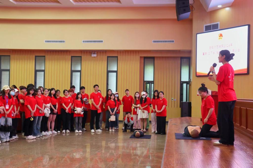 7月5日上午,洛阳师范学院2024年暑期“三下乡”社会实践团队出征前培训会在G1-112举行,会议由校团委副书记孙志隆主持,200余名实践队学生代表参与。商学院“为爱守护成‘救’你我”——红十字应急救护知识普及实践队在培训会上做急救知识科普。