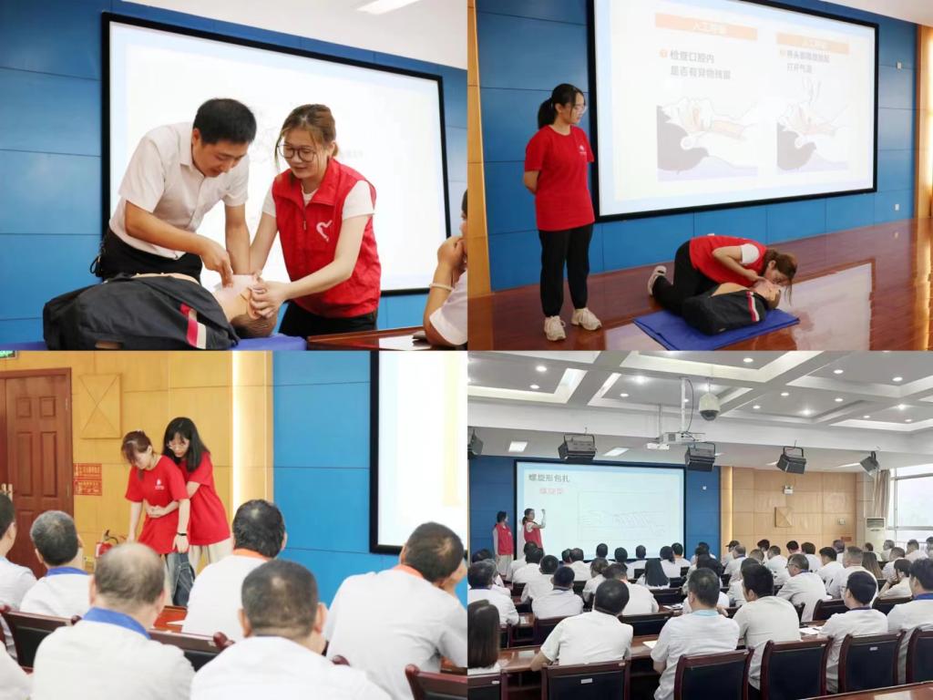 本次培训的受众主要为企业员工,参培人数120余人。培训分为理论教学和实践操作两个部分。实践队员李博晗为大家讲解学习应急救护急救的重要性,并详细地讲解了心肺复苏术、海姆立克急救法、止血包扎、中暑急救等内容,着力提升企业职工急救意识和知识水平。