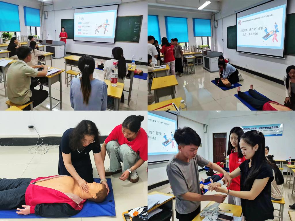 为进一步增强学生的安全意识和应急救护能力,保障自身和他人的生命安全,7月15日上午,商学院“为爱守护,成‘救’你我”——红十字应急救护知识普及实践队应邀前往国际教育学院为老挝留学生进行了一场急救科普实践活动。