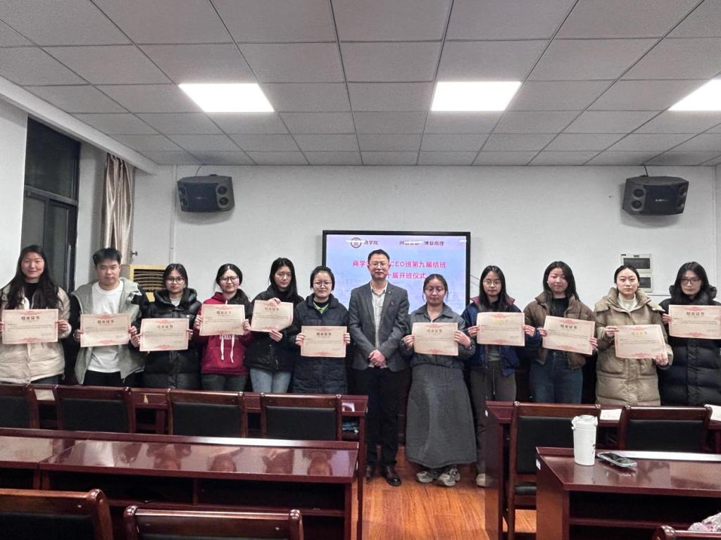 2025年2月25日,商学院“未来CEO班”第九届结班与第十届开班仪式在商学院514教室举行。仪式由班主任王烁和党委副书记张瑞萍共同主持,第九届和第十届CEO班全体学员参加。