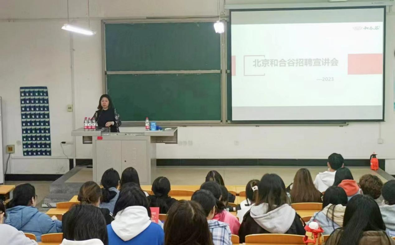 4月21日上午,由校招生就业处主办商学院承办的北京和合谷餐饮服务有限公司招聘会于A5-109教室顺利举办,该公司人力资源经理蔡艳芬担任主讲人,商学院毕业生积极参加。