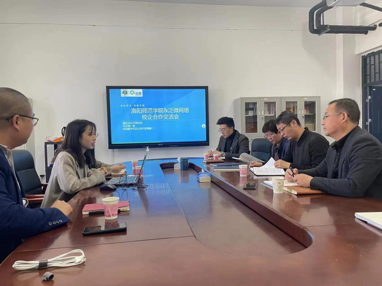 4月27日上午,上海泛微网络科技股份有限公司机构发展总监高垚荔、招聘专员徐艳和冯月一行人来访洛阳师范学院商学院交流并洽谈校企合作事宜。座谈会在A13-501会议室举办,商学院党委书记陈立栋、就业办负责人王红权参加本次座谈。
