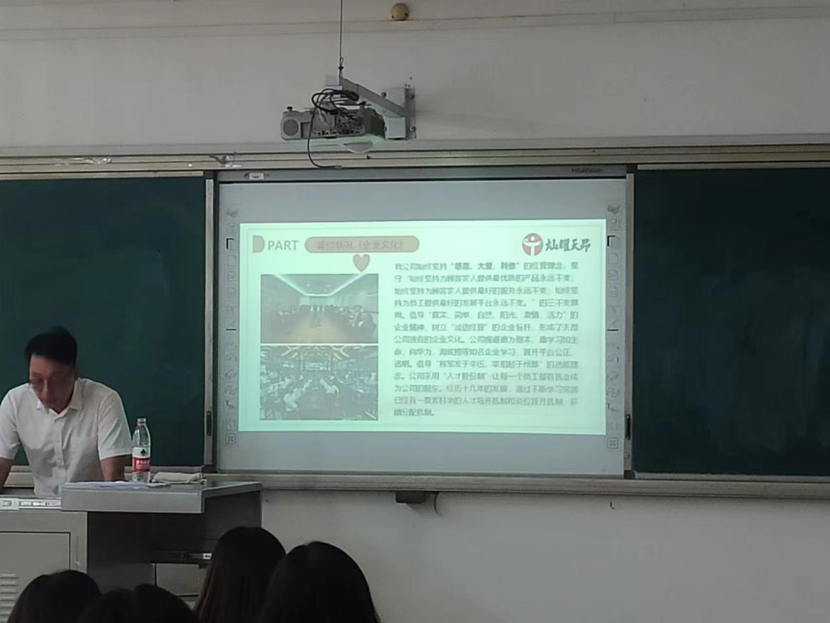 上海灿耀天昂智能科技有限公司成立于2014年,是一家从事科技推广和应用服务业为主的企业。在宣讲会上,主讲人为大家介绍了公司概况、经营理念、主营业务以及发展前景,强调了公司以人为本的企业文化,同时对本次招聘要求与流程作了简要说明。在问答互动环节,同学们积极踊跃地进行提问,主讲人耐心地为同学们指点迷津,让同学们进一步加深了对招聘岗位的了解。招聘会取得圆满成功。