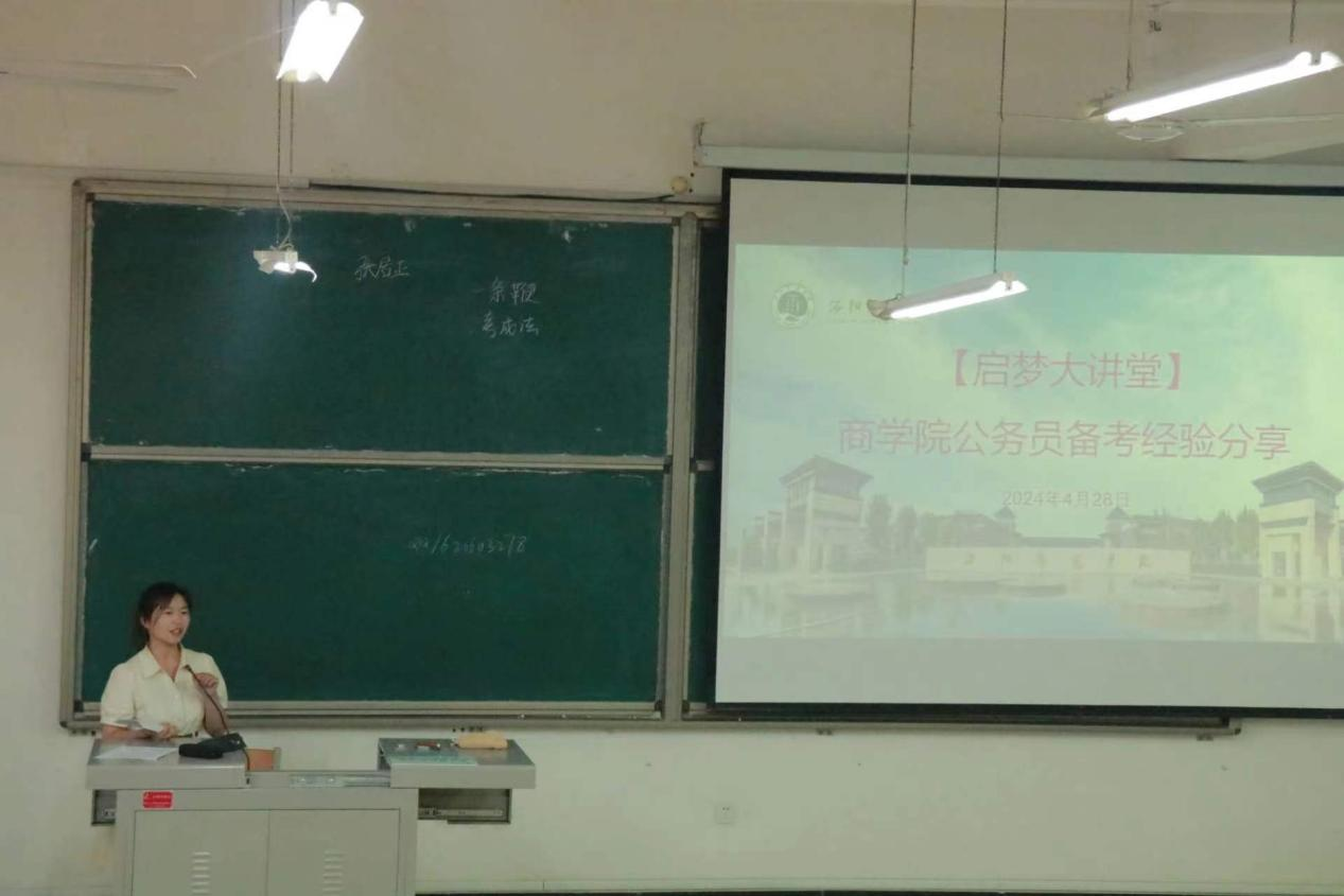为加强学生对公务员考试的认识和理解,明确奋斗目标,增强学习动力,4月28日下午,由招生就业处主办,商学院承办的启梦大讲堂系列之“筑梦成‘公’——商学院公务员备考经验分享会”在商学院A5-109顺利举行。