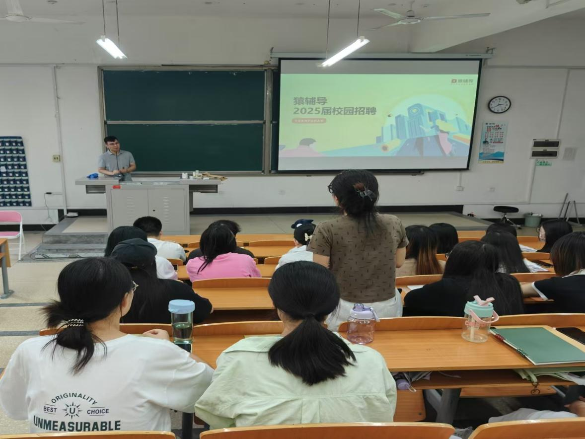 郑州猿辅导信息科技有限公司创立于2012年,是一家K-12(覆盖学前到12年义务教育)在线教育首个独角兽公司,主要从事在线教育业务的企业。宣讲会上,招聘负责人王澳平通过公司宣传片和PPT详细介绍了公司的发展过程、基本概况、工作内容、招聘岗位、主营业务及发展前景,使同学们对猿辅导有了更深入的了解。宣讲会最后,招聘负责人就学生提出的问题一一进行答疑解惑并表示欢迎同学们加入猿辅导。