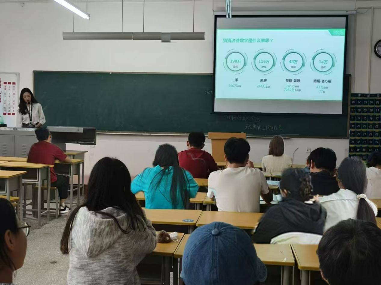 上海链家房地产经纪有限公司成立于2008年,是一家主要从事房地产业务的企业,业务覆盖全国30个城市和地区。宣讲会上,同学们观看了公司的宣传片,倾听了招聘主讲人对链家的企业历史、发展概况、工作内容、薪酬福利、发展前景的详细介绍,对链家有了更深入的了解。最后的互动环节,主讲人就学生提出的线上线下面试技巧进行答疑解惑,讲解了线上线下面试的具体步骤,鼓励同学们提高综合素质,发挥专业优势,争取更好的就业机会,同时也欢迎更多同学加入链家大家庭。