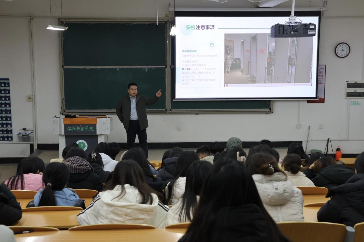 培训会伊始,负责人表示考研征程充满挑战,细节关乎成败,希望通过对考试注意事项的深入讲解,助力同学们顺利应考。邱红祥强调了考前准备的关键要点,如考生的“入场券”--准考证、考试用具和着装都要严格遵循考场要求,确保万无一失。针对考试当天的流程,邱红祥从进入考场、考试期间到考试结束都进行了详细的讲解,邱红祥表示考场心态也是考研成功的隐形关键。最后邱红祥为考研学子加油打气,鼓励大家在冲刺阶段保持坚定信念,合理安排时间,科学备考,以最佳状态迎接考试。