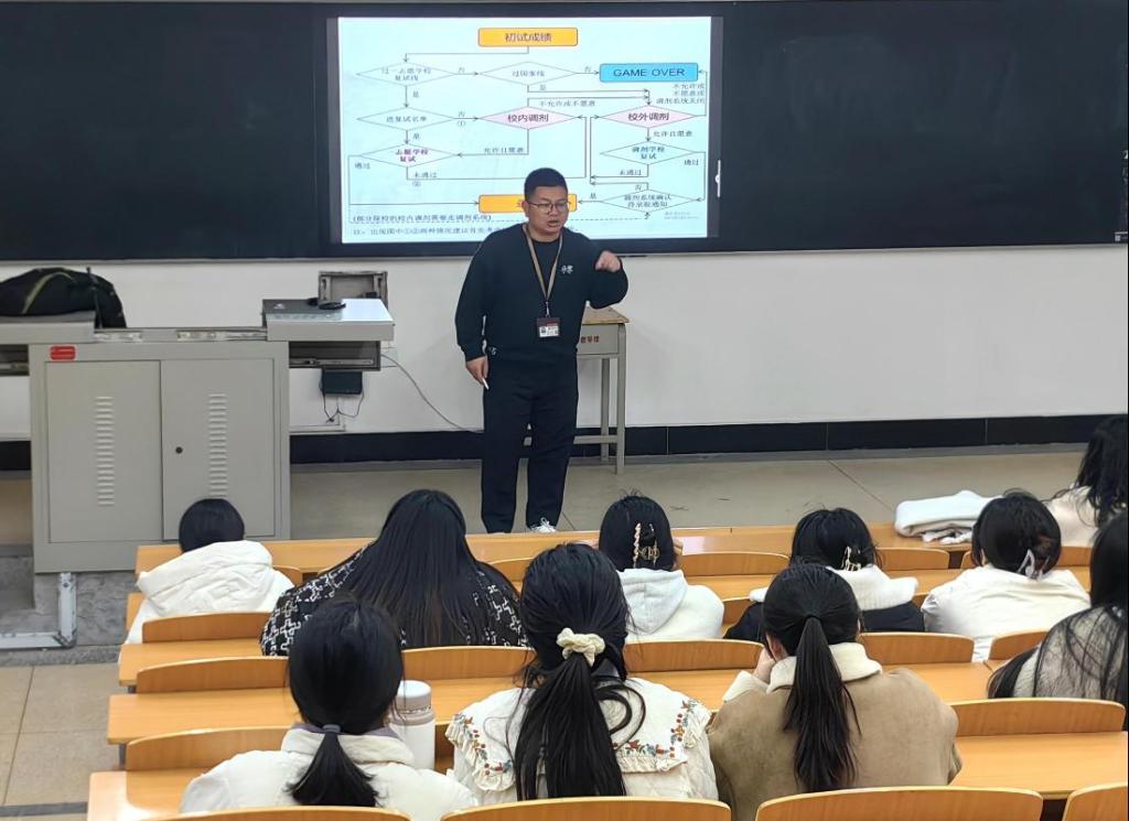 2月26日晚,商学院举办考研调剂与复试指导分享会在A5-108教室顺利举办,本次活动由杜春龙老师担任主讲,商学院考研学生积极参加。