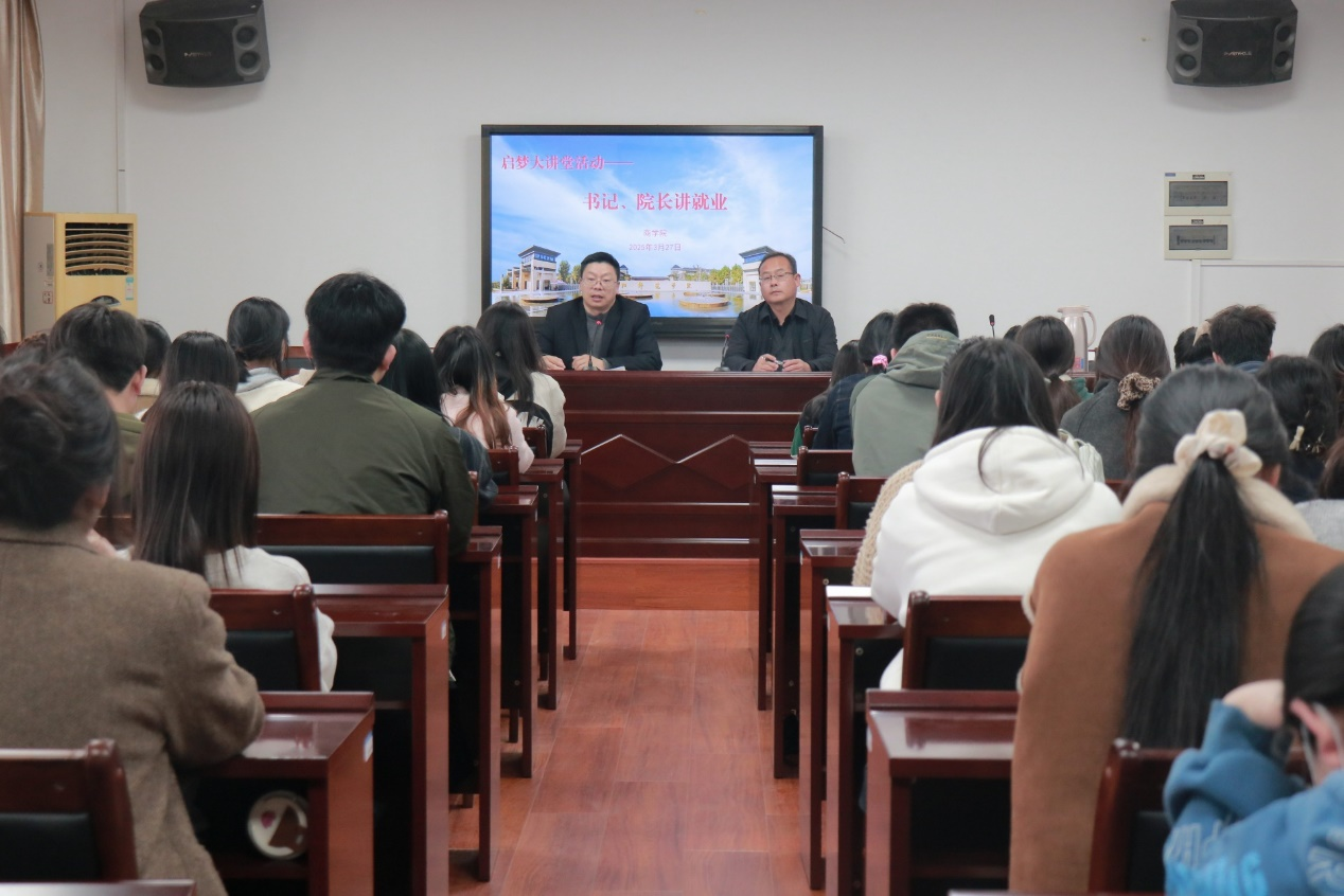 为贯彻落实习近平总书记关于做好高校毕业生就业工作的重要指示批示精神,3月27日下午,商学院在A5-514举办启梦大讲堂之“书记、院长讲就业”专题讲座。学院党委书记陈立栋、院长张成玉担任主讲,为2021级毕业生代表开展就业指导。