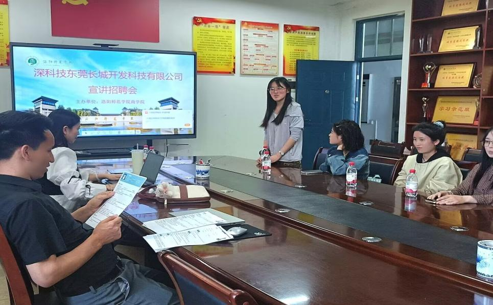 4月28日下午,由洛阳师范学院商学院主办的的深科技东莞长城开发科技有限公司招聘宣讲会在A5-514和A5-516召开。