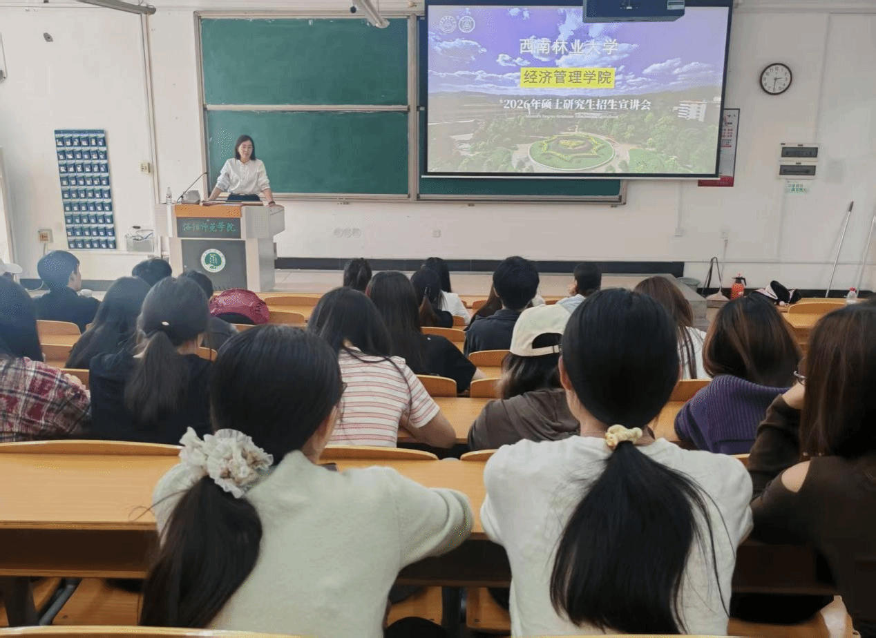 为帮助考研学子深入了解院校信息,科学规划升学路径,2025年9月25日下午,在A5-109教室顺利举办西南林业大学经济管理学院研究生招生宣讲会。