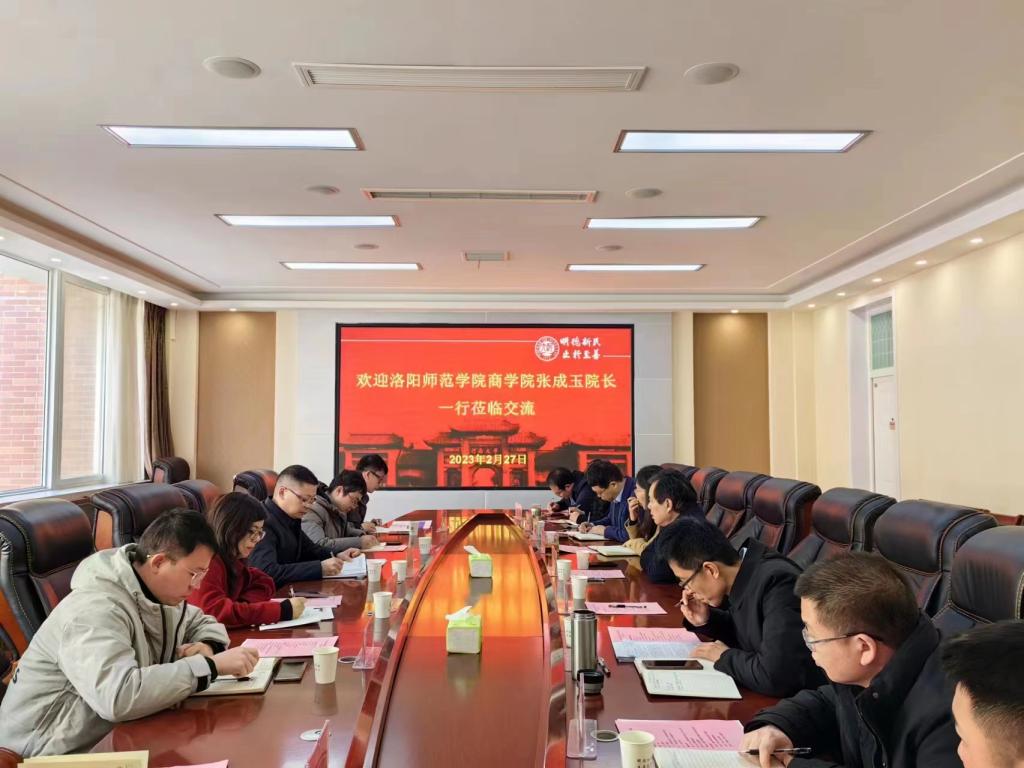 为充分借鉴省内一流高校在本科专业评价、学科科研、实习就业等工作上的成功经验,2月27日,在院长张成玉的带领下,我院一行6人前往河南大学商学院交流学习。交流座谈会在河南大学商学院会议室举行,河南大学商学院院长、党委书记、副院长、党委副书记、各专业系主任、团委负责老师等出席会议。