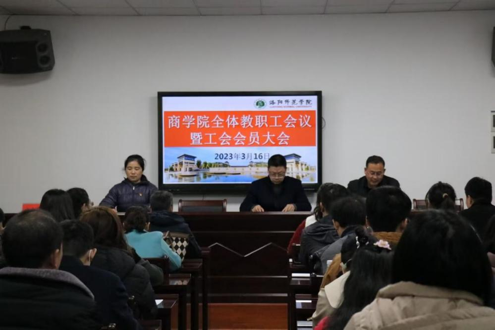 3月16日下午,商学院在A5-514组织召开全体教师会暨工会会员大会。本次会议由党委书记陈立栋主持,院长张成玉,党委副书记、分工会主席张瑞萍等领导出席会议,全体教职工参会。