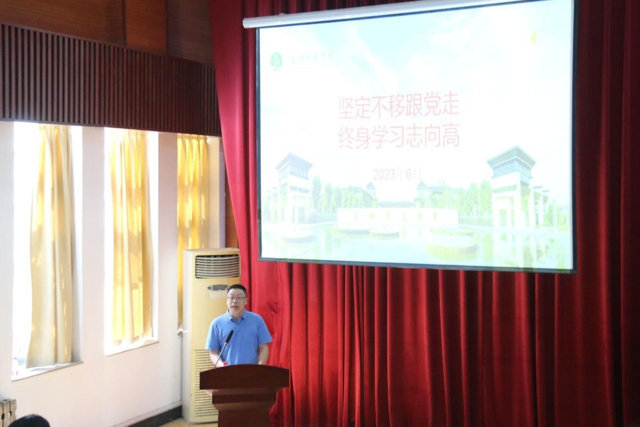 为扎实开展学习贯彻习近平新时代中国特色社会主义思想主题教育,确保各项重点措施和任务落到实处,6月8日下午,商学院院长张成玉以《坚定不移跟党走,终身学习志向高》为题给全体毕业生讲授专题党课。