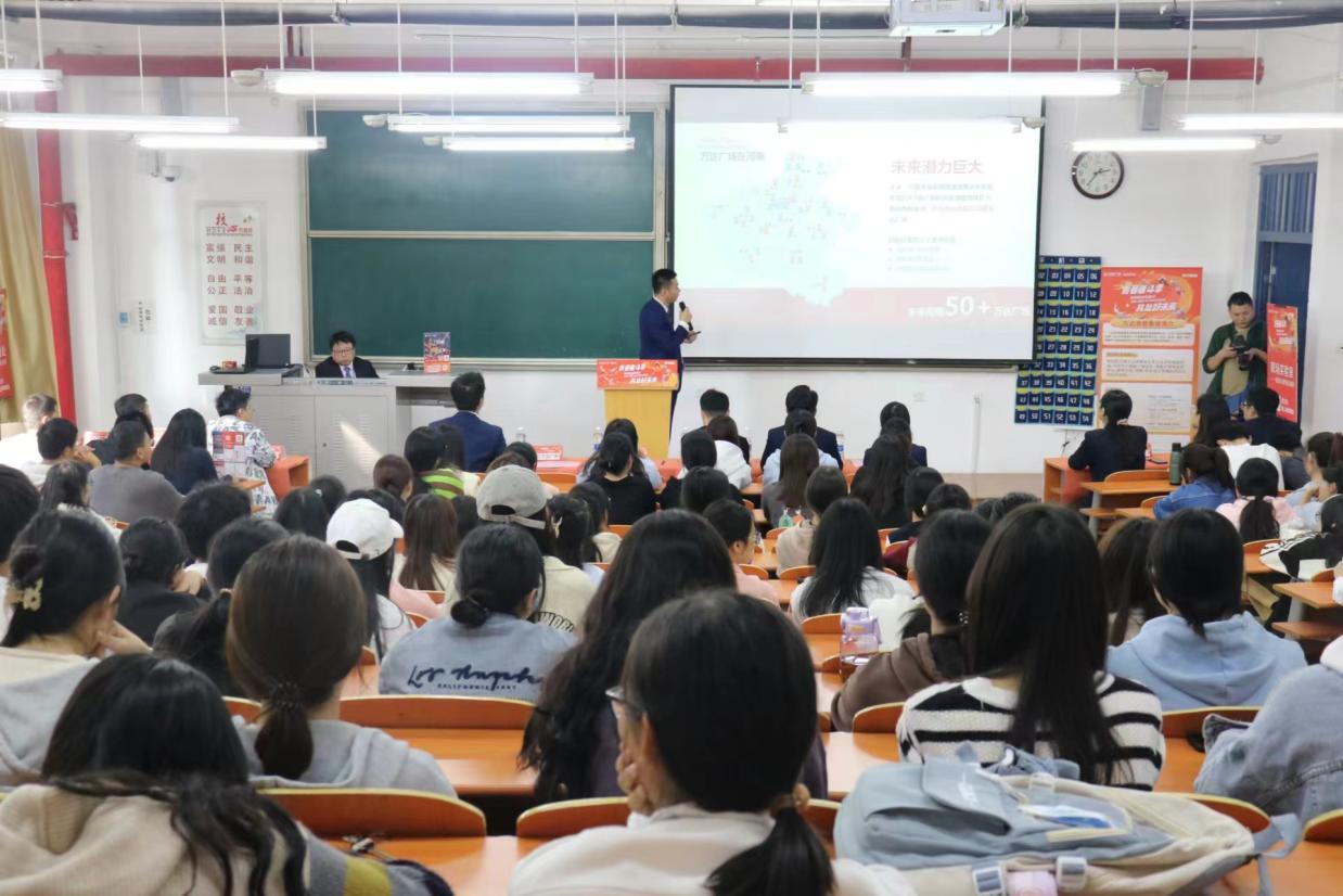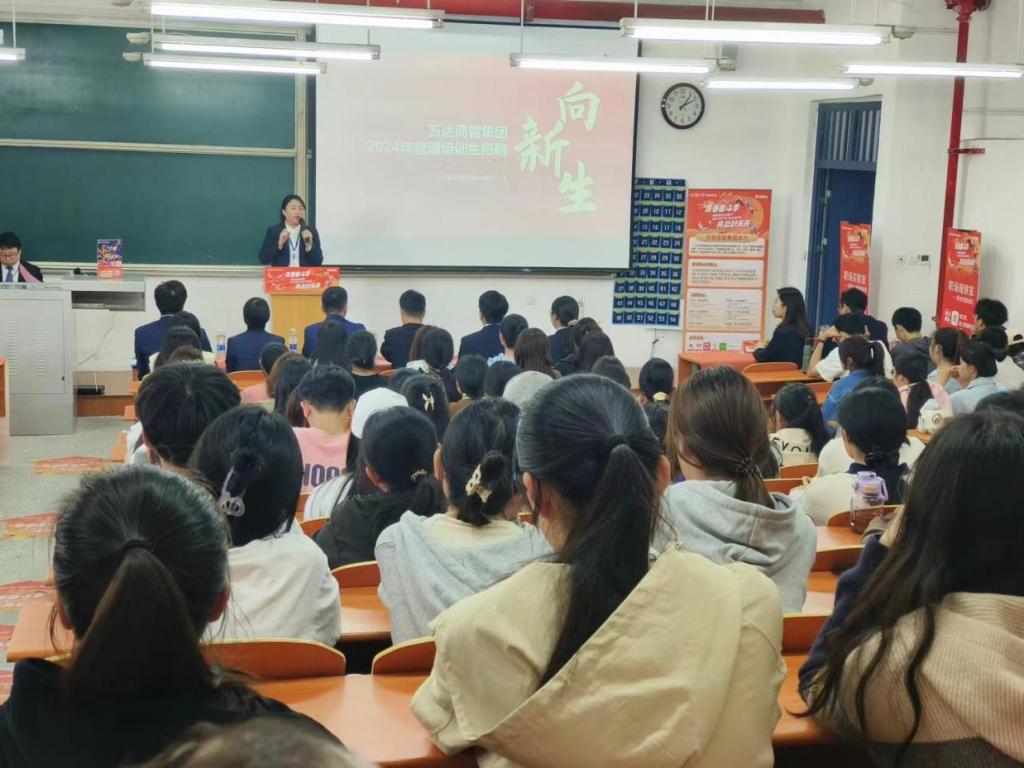 万达集团创立于1988年,是一个旗下产业处于世界行业领先地位的大型企业集团。本次万达广场商管集团-郑州城市公司面向我校主要招聘运营、招商、出纳、人事行政等职位。宣讲会上,主讲人通过公司宣传片和PPT演示向同学们介绍了万达商管集团的基本情况以及校招岗位、校招流程。优秀管培生代表现身说法,为我校毕业生传授经验、给予帮助。互动环节,招聘负责人解答了同学们的疑惑,鼓励毕业生积极完善简历,提高综合素养,为未来就业做好更充分的准备。
