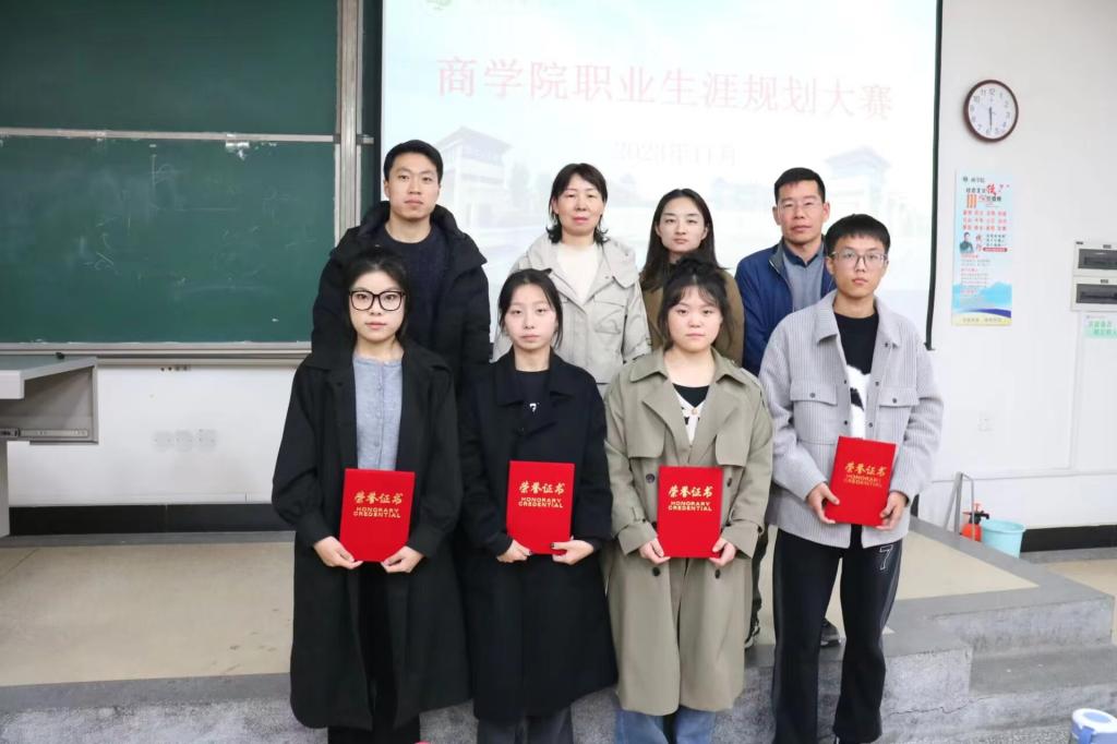 此次比赛分设为成长和就业两个赛道。成长赛道选手围绕职业目标,行动成果和目标契合度三方面分享自己的生涯发展报告,就业赛道选手从个人求职意向和职业准备情况两方面进行主题陈述,展示个人的综合素质、岗位能力和发展潜力。每位选手主题陈述后,由评委老师根据选手职业生涯规划书、个人简历及路演表现进行现场点评实时打分。经过激烈角逐,大赛产生一等奖4名,二等奖6名,三等奖6名,优秀奖7名,评委老师现场为获奖同学颁奖并合影留念。大赛取得圆满成功。