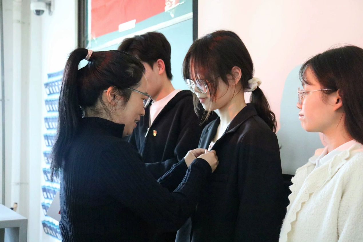 仪式开始,与会人员奏唱《国际歌》,预备党员代表胡仪卓带领全体人员面向党旗庄严宣誓。接下来,张瑞萍为新党员代表佩戴党员徽章并发放《中国共产党章程》《中国共产党纪律处分条例》学习读本。张娟、樊一鸣两位同志分别作为预备党员、正式党员代表发言,表达了以实际行动践行誓言的决心。