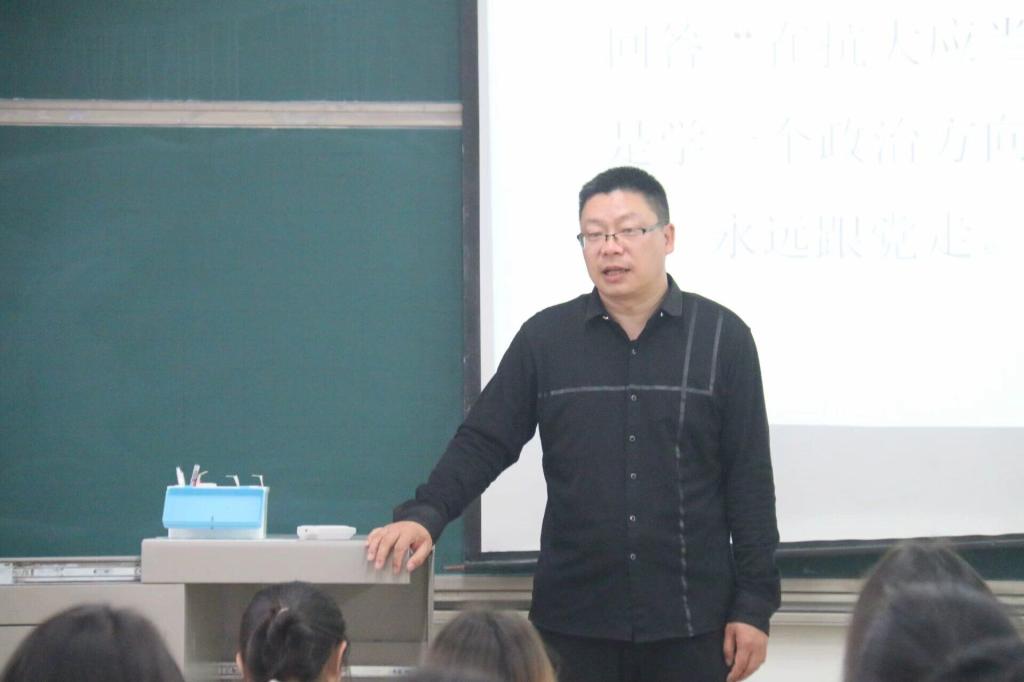 4月11日晚,商学院院长张成玉以“大学生入党积极分子应该怎样做”为题在A5-203为入党积极分子和预备党员讲授党课。