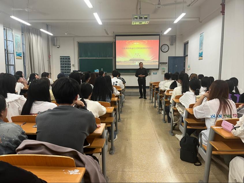 在全球化的大潮中,中美两大国的博弈关系一直备受关注。为了更好地帮助学生们理解这一复杂的国际形势,明确当代大学生的责任与担当,4月17日,商学院党委书记陈立栋以《中美博弈中当代大学生的责任与担当》为题为2023级同学讲授思政课。