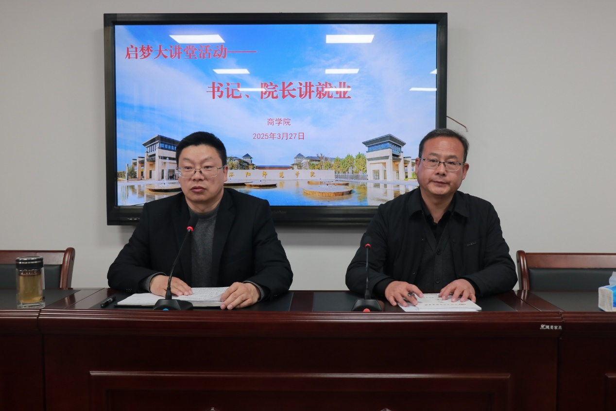 为贯彻落实习近平总书记关于做好高校毕业生就业工作的重要指示批示精神,3月27日下午,商学院在A5-514举办启梦大讲堂之“书记、院长讲就业”专题讲座。学院党委书记陈立栋、院长张成玉担任主讲,为2021级毕业生代表开展就业指导。