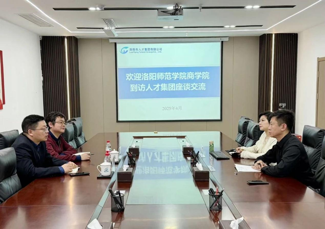 为深入贯彻落实产教融合发展战略,服务洛阳"青年友好型城市"建设,4月11日,洛阳师范学院商学院院长张成玉、副院长余江波率队赴洛阳市人才集团开展校企合作专题调研。洛阳市人才集团党总支书记、董事长、总经理张斌,人力资本服务有限公司总经理任芳及相关部门负责人参加座谈交流。