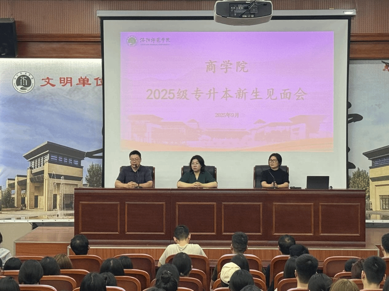 9月7日下午,洛阳师范学院商学院在G5-402教室举行2025级专升本新生见面会。学院领导班子成员、相关班主任、辅导员出席本次见面会,会议由党委副书记张瑞萍主持。
