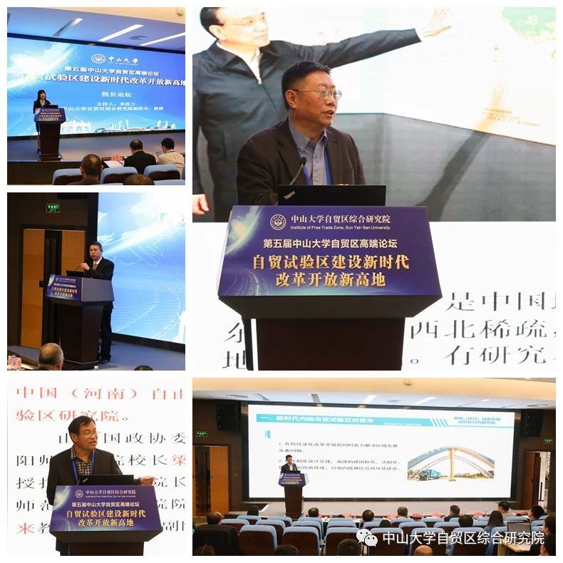 该论坛由中山大学自贸区综合研究院(广东省重点智库)主办,中山大学粤港澳发展研究院、中国高校自贸区研究联盟、新华网广东有限公司协办,论坛主题是“自贸试验区建设新时代改革开放新高地”。中山大学副校长、自贸区综合研究院院长李善民教授出席并致辞。
