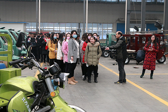 为加深学生对生产企业营销活动中涉及的工具、设备、流程、运营管理模式和企业文化认识与理解,激励学生积极创业,2016年1月5日下午,洛阳师范学院商学院院长刘玉来带领2014级市场营销班50多名同学赴河南北方永盛摩托车有限责任公司参观学习,其中商学院优秀学生代表陈思念、吉文杰等拜北方永盛集团董事长高留斌为校外导师。