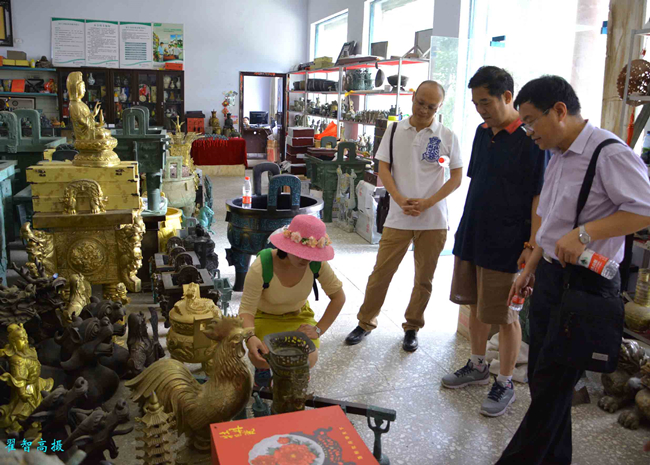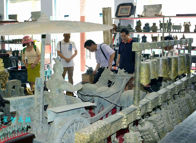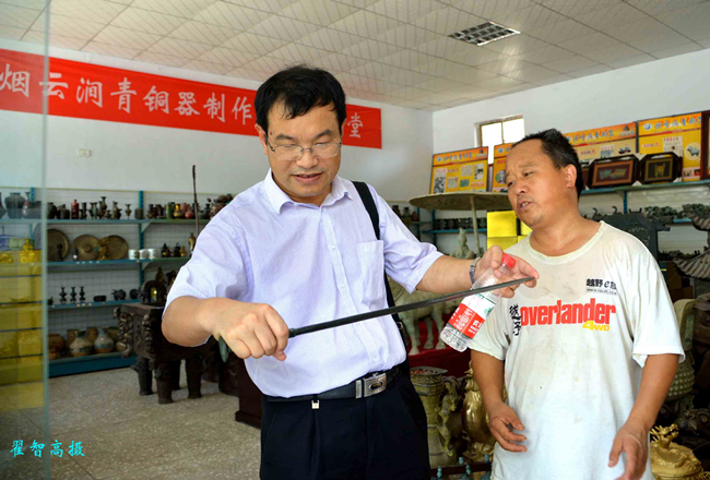 8月13日上午,市社科联副主席刘占斌,洛阳商学院院长刘玉来,洛师商学院讲师郑菊花博士,洛师艺术设计学院视角传达系主任马柯一行,不顾高温酷暑,专程到闻名遐迩的青铜古镇洛阳烟云涧青铜器有限公司进行调研。