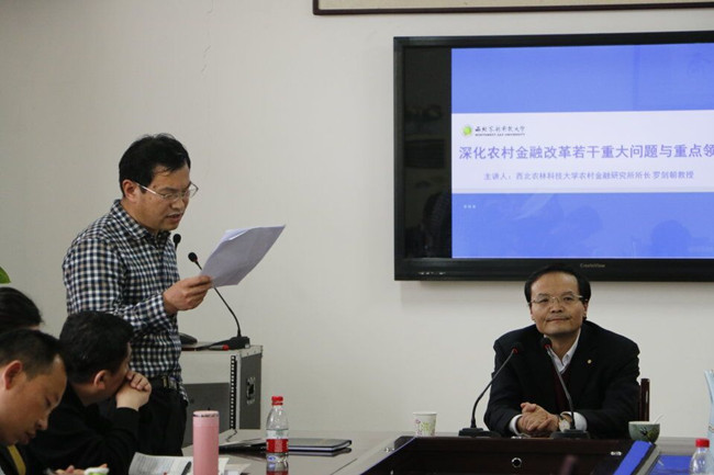 本次报告会特邀西北农林科技大学农村金融研究所所长,兼任中共陕西省委讲师团特聘专家教授、陕西省首批农业专家服务团成员、长安银行股份有限公司独立董事、陕西省咸阳市第六届人民代表大会代表、委员,杨凌示范区决策咨询专家委员会委员、陕西省经济学会常务理事、陕西省金融学会理事、西安金融学常务理事、《西北农林科技大学学报(社科版)》副主编,并享受政府特殊津贴的罗剑朝教授担任主讲。