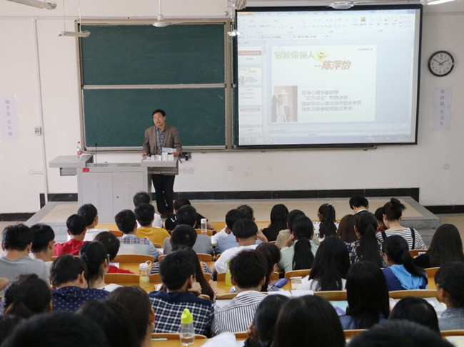 伴随着舒缓的音乐声,陈萍怡教授带领学生们进行了怡和宁静的冥想活动,并引导学生们去感应具有精神性的超然语言,去收获净化意识、精神倍增的喜悦。开讲前,“破冰”游戏中的心理投射画更是激发了同学们对心理学奥秘的探寻。讲座中,陈教授从“重视自己的心理健康”和“压力管理方法”两大方面对中心议题进行了深刻解读。她从压力调查数据着手,详细地分析了“压力源”、“能量指数”及“身心模式”的各项指标与内在情绪之间的密切关系,并指出内在情绪调整是一生必修的功课。对于如何处理好情绪,陈教授提出“说出压力”、“笑出压力”、“动出压力”及“唱出压力”等独具特色的建议,使在场师生受益颇深。在“压力管理方法”分析中,陈教授旁征博引,以国内外实例为基础,对“正向沟通减压法”、“转念减压法”、“冥想减压法”与“意义换框法”等多种减压方法进行了高屋建瓴的分析,对学生们具有重要的启发与借鉴意义。