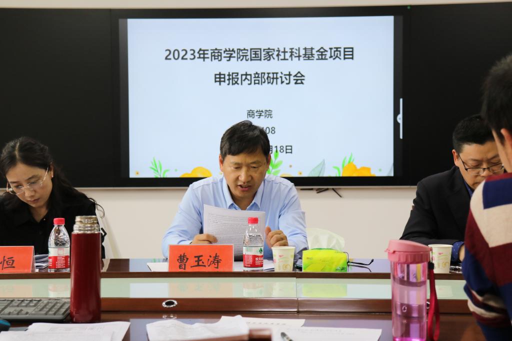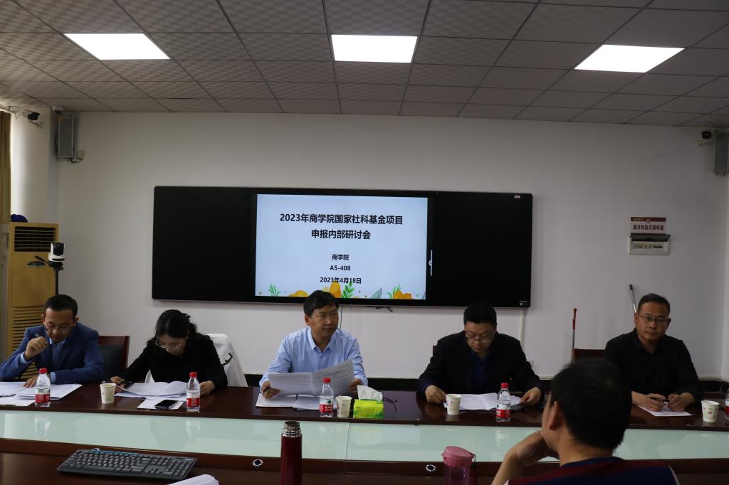 4月18日下午,商学院组织开展国家社科基金项目申报内部研讨会。副校长曹玉涛,科研处处长刘恒,副处长马竞强作为专家评审团出席本次研讨会。